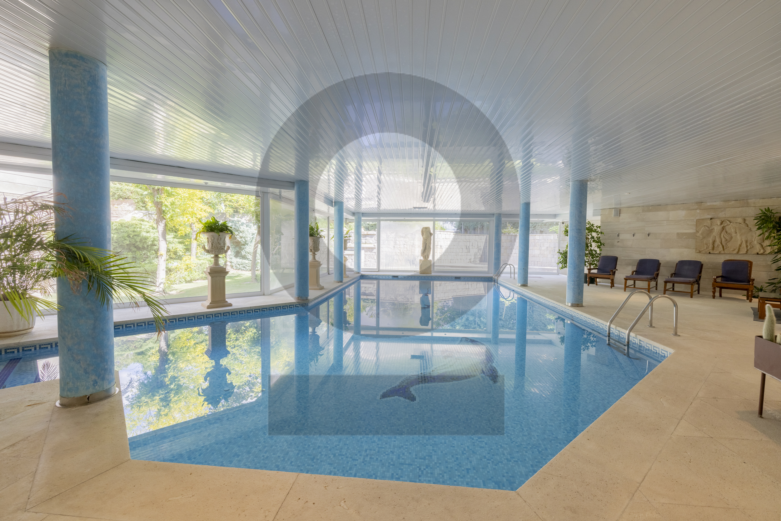 Ubicado en la prestigiosa urbanización de Santo Domingo en Algete, este impresionante chalet independiente combina lujo y confort en un entorno exclusivo. Con una parcela de 6.563 m² ( más una zona rustica de 2,5 hectáreas) y una superficie construida de 2.556 m², esta propiedad destaca por sus amplios espacios, su diseño contemporáneo y su excelente orientación sur. Cuenta con 7 dormitorios, 6 baños y 2 aseos, además de un espectacular jardín de 4.861 m² con piscina interior y exterior. Se divide en casa principal, casa independiente de invitados y en la zona rústica hay una vivienda , un chiringuito y una tercera piscina. Distribución y características Este chalet ha sido diseñado para proporcionar comodidad y funcionalidad en cada rincón: