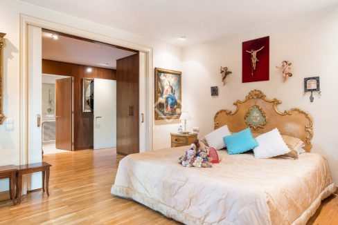La zona de noche consta de la gran suite principal que comunica con una salita y dos vestidores independientes, además de un gran baño, todo orientado a la calle Escoles Pies. A continuación, nos encontramos con un pasillo que nos conduce a dos suites y un despacho con aseo que se podría habilitar como otra suite con baño.